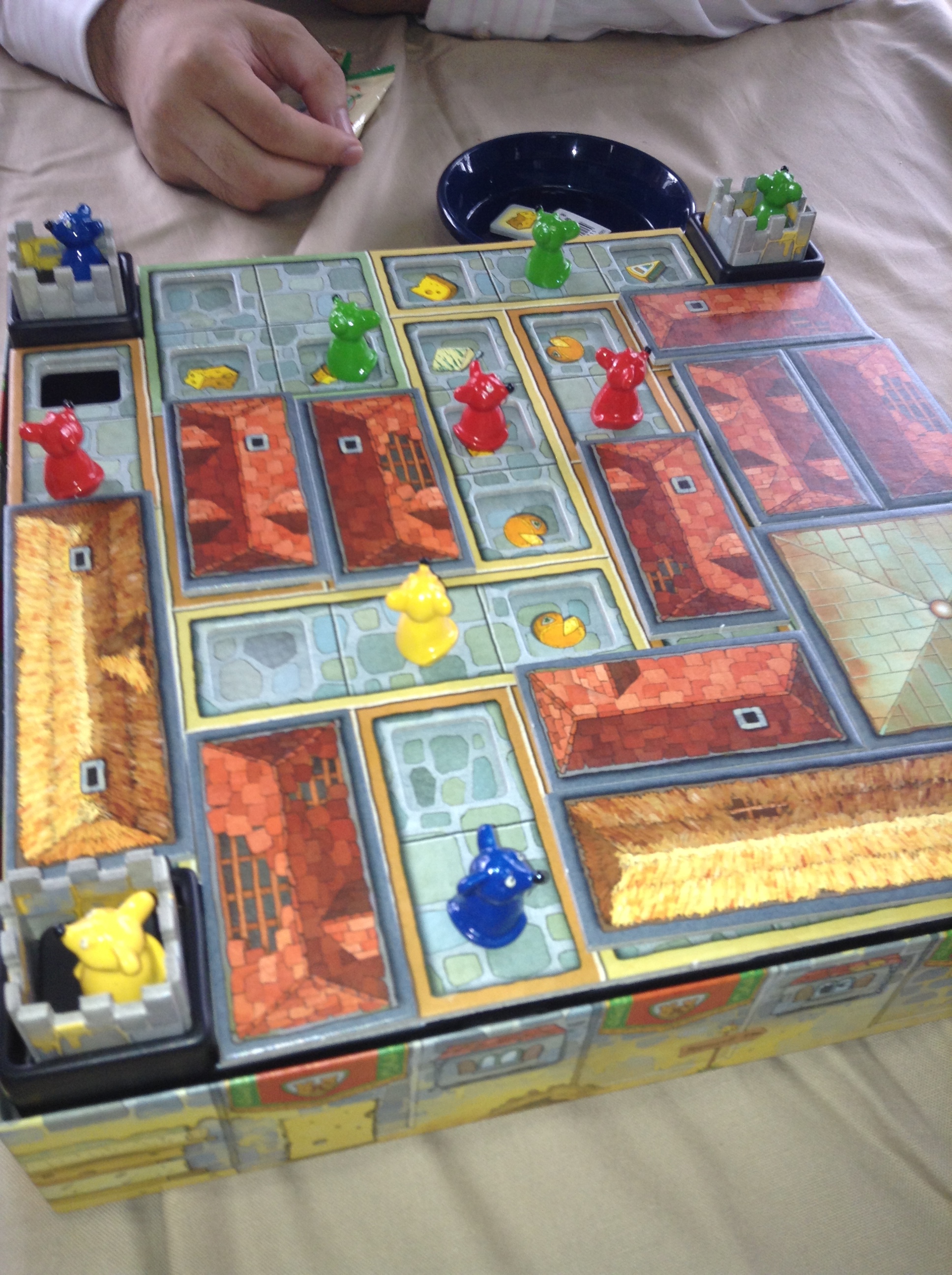 次に遊びましたのは、チーズのお城。タイルが移動しますし、屋根によって隠れさているのがポイント。落とし穴に落ちないようにネズミを操ります。